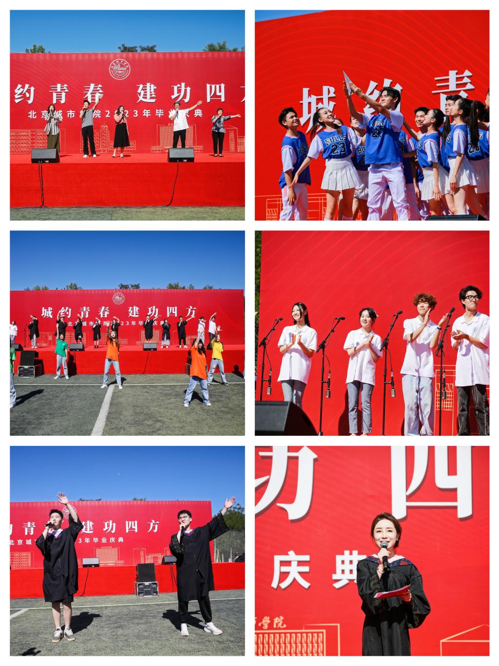 庆典上,师生为毕业生们倾情献上诗朗诵《你好北城,再见北城》、体育舞蹈《直到世界尽头》和歌曲大联唱等节目,表达了对2023届毕业生的惜别之情和美好祝福。