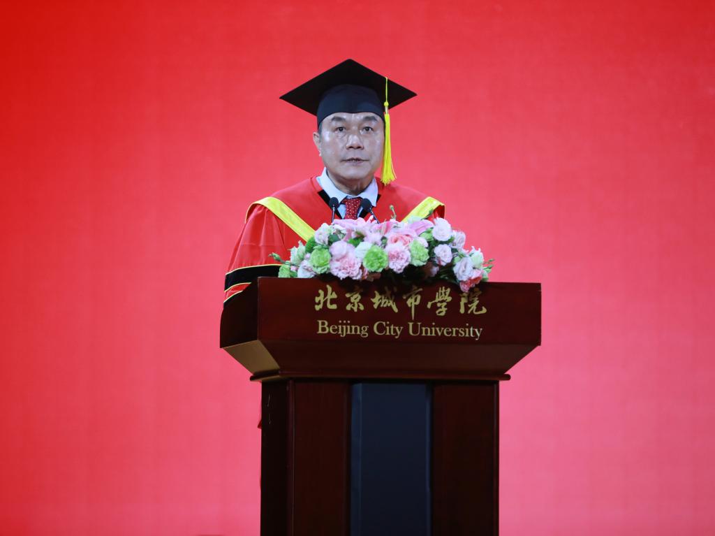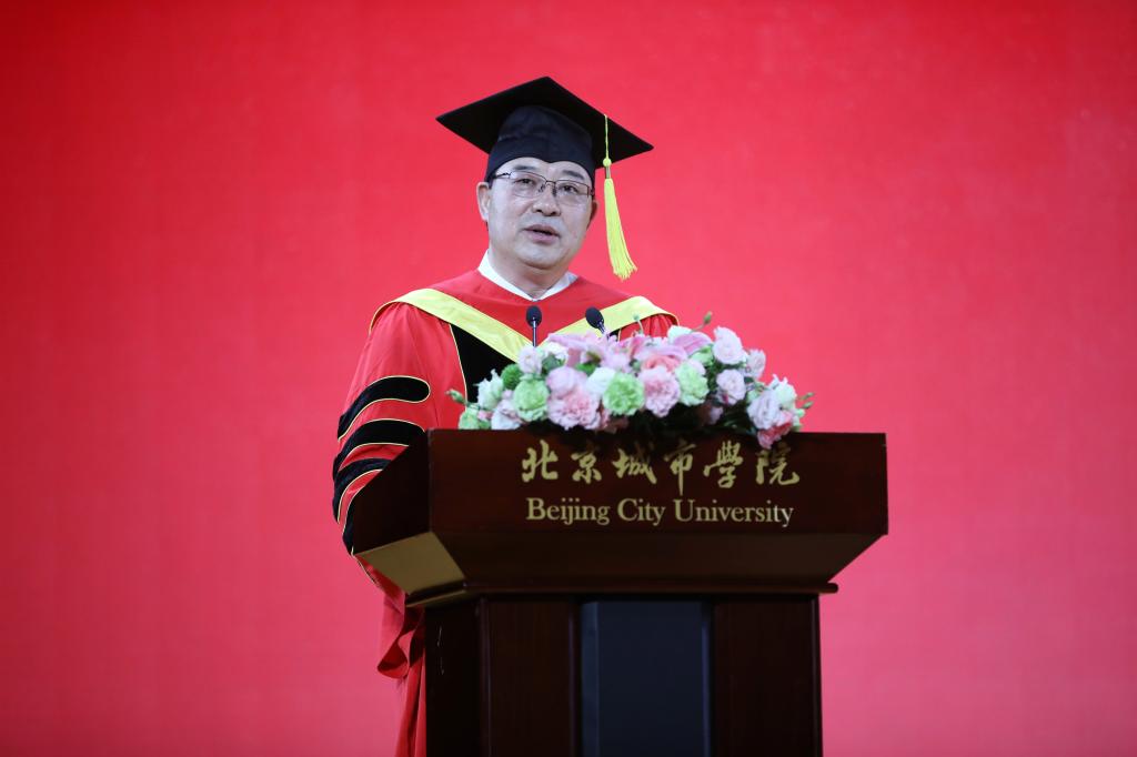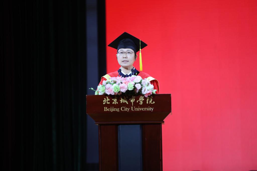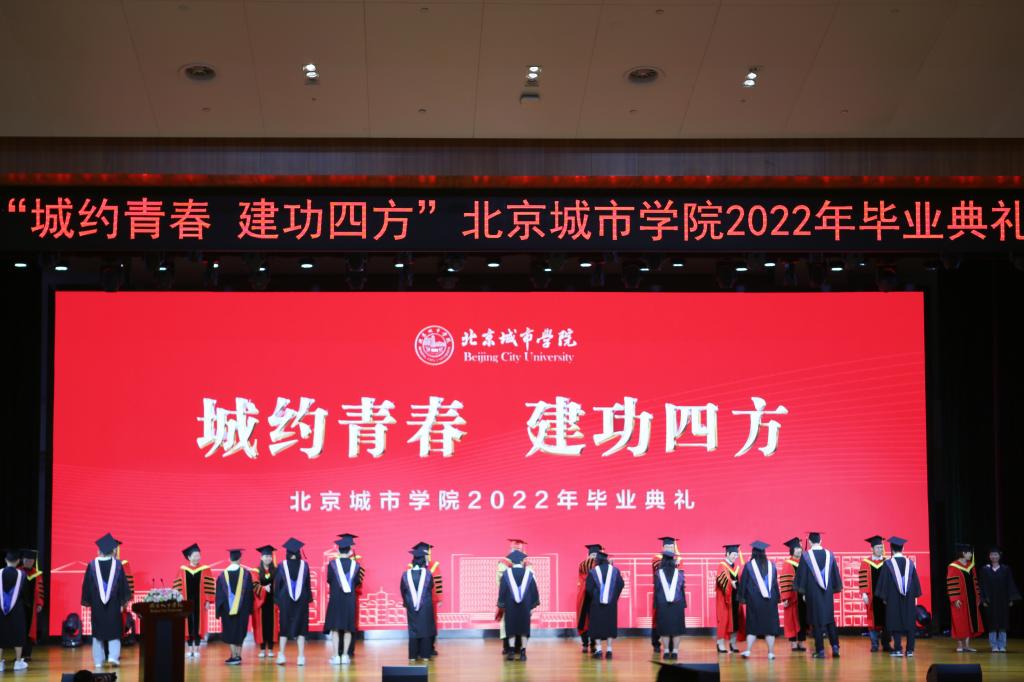 刘林校长指出,在前所未有的挑战面前,同学们和老师们共同探索,创造出了新的学习之道,新的生活、社会实践、工作的模式,顺利地完成了学业。在媒体称之为“史上最难就业季”的时候,2022届毕业生顺利地实现就业或升学深造,为自己的大学画上了圆满的句号。过去几年间,在庆祝中国共产党成立100周年和庆祝中华人民共和国成立70周年的重大庆典上,在北京冬奥会、冬残奥会重大国事活动中,同学们展现出了首都大学生的骄人风采;在国际、全国、北京举办的高校学生各类专业竞赛、比赛、展赛等活动中,同学们展现出了北城学子的出色实力;在抗击疫情、志愿服务、乡村振兴等公益活动中,同学们展现出了当代青年的优秀素质。同学们走向社会之际,正是全球发生深刻巨变之时,也是中华民族开启第二个百年征程、走向伟大复兴的新时代,希望同学们肩负起时代赋予的使命任务,书写勇毅前行的青春画卷。