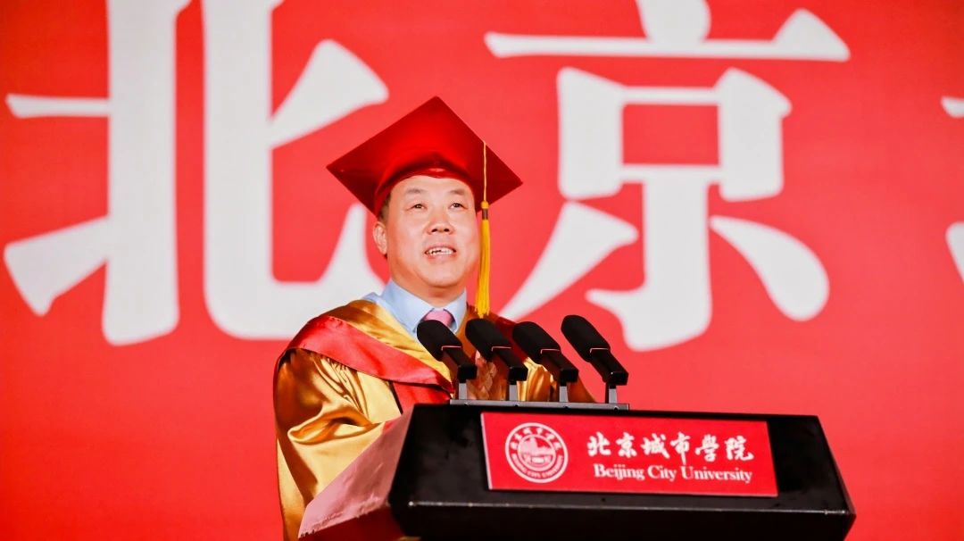 刘林校长带领毕业生回顾了北城建校40年来“改革探索、勤奋进取、艰苦创业、开拓前进”的奋进历程,希望毕业生们从学校的历史、文化中进一步汲取精神的力量,向即将踏上新征程的毕业生们殷切寄语:“改革探索,秉持锐意创新的精神;勤奋进取,秉持永远向上的心态;艰苦创业,秉持永不言弃的毅力;开拓前进,秉持一往无前的勇气”。他希望同学们走上社会以后,要勇毅向前、向前、再向前,不断攀登人生的新顶点。
