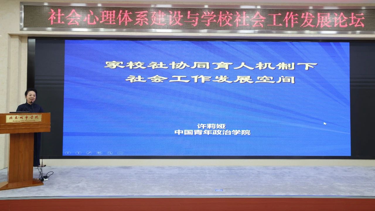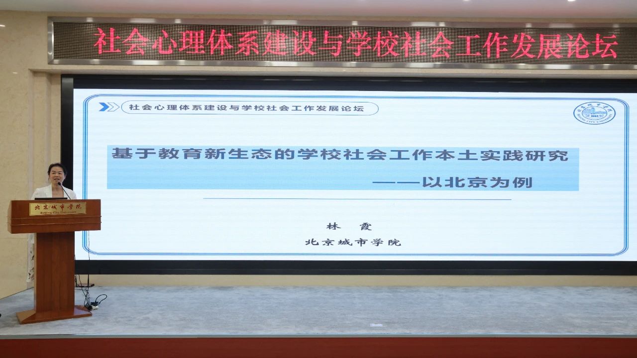 sunbet申搏公共管理学部教授、中国社会工作学会学校与家庭专业委员会副主任委员林霞以“基于教育新生态的学校社会工作本土实践研究——以北京为例”为题,分享了sunbet申搏师生在学校社会工作本土化实践中的经验成果,提出了教育新生态背景下学校社会工作发展的创新策略。