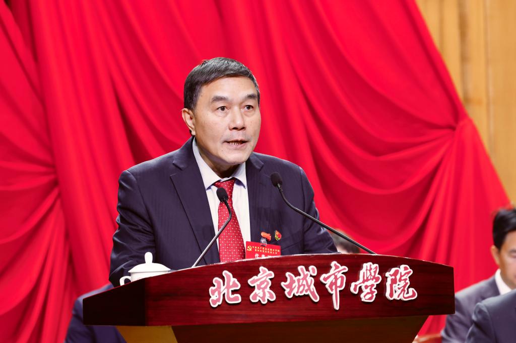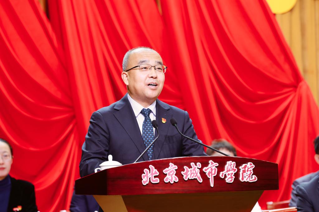 于英杰代表市委教育工委对大会的召开表示热烈祝贺,对学校第三次党员代表大会以来学校党建和各项事业取得的成就给予充分肯定,并对学校党委提出四点期望与要求:一是坚持社会主义办学方向,在加强党对民办教育的全面领导上当标杆;二是坚持为党育人为国育才,在培养堪当民族复兴大任的时代新人上当标杆;三是坚持服务新时代首都发展,在建设中国特色高水平民办大学上当标杆;四是坚持统筹发展和安全,在涵养办学治校良好政治生态上当标杆。