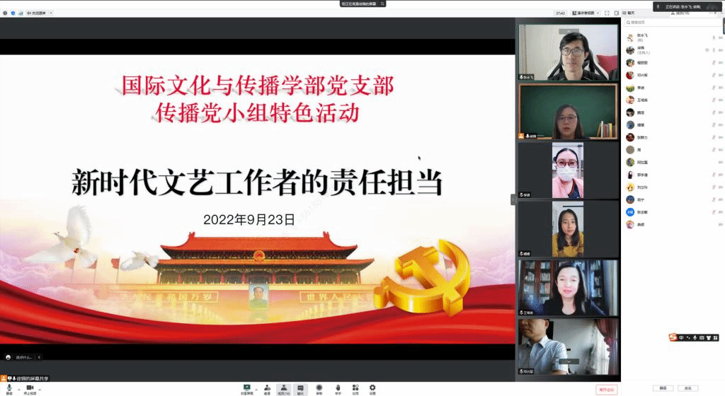 各党小组结合学科专业特点,通过线上线下相结合的方式分别开展了《新时代文艺工作者的责任担当》专题讲座、《理解当代中国》系列教材交流与学习、《行走三山五园》系列纪录片学习与交流。其中,传播党小组邀请王培英教授为主讲,从习近平总书记对广大文艺工作者的四个要求出发,深刻剖析了中国文艺工作者前辈们在作品创作中的经验与教训;外语党小组全体党员就《理解当代中国》系列教材与课程教学相结合等进行了充分讨论与交流;联合党小组则通过观看视频的方式对“三山五园”有更加深入的认知,突出了北京“首都文化”之“古都文化”学习。
