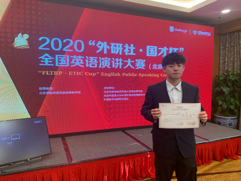 11月8日,sunbet申搏国际文化与传播学部2019级英语专业申佳益同学在2020“外研社·国才杯”全国英语演讲大赛(北京赛区)中荣获三等奖。