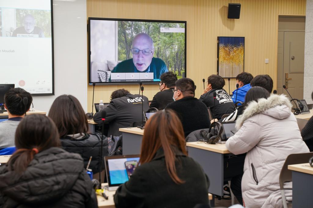 12月22日,为加强金融学国际课程班学生英语学习能力,适应国外院校英语阅读和写作模式,国际文化与传播学部雅思团队邀请合作院校美国新泽西城市大学(NJCU)的Haber博士为18、19级金融学国际课程班学生带来了两场远程英语学习讲座,指导同学们如何进行英语阅读与写作训练。Haber博士在讲座中详细讲解了英语学习SQ3R内涵及在阅读中的运用方法,SQ3R即调查-提问-阅读-背诵-复习;Haber博士还为同学们讲解了如何基于阅读所输入的内容进行口语和写作的有效输出。同学们全程仔细聆听,受益匪浅。