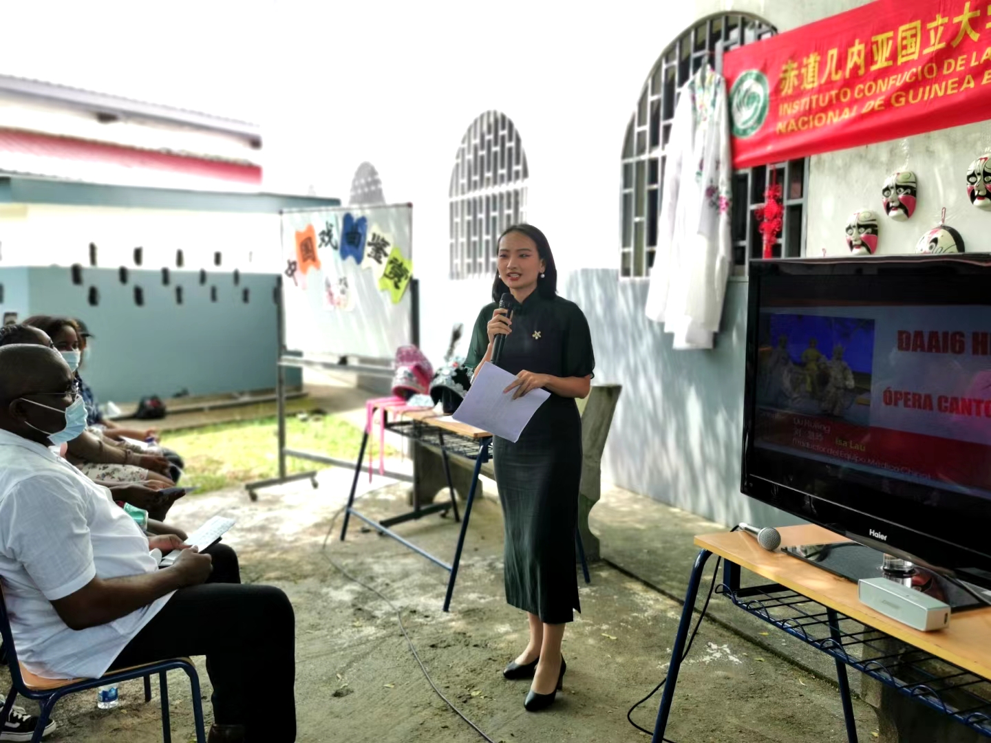 刘慧玲在赤几国立大学孔子学院活动中介绍中国戏曲文化