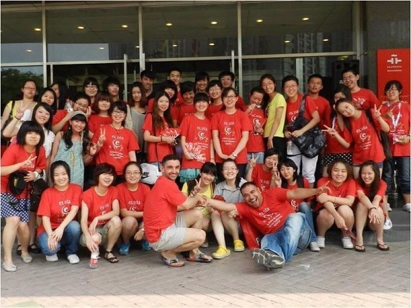 2013年西班牙语专业组织学生参加北京塞万提斯学院“西班牙语日”活动,中间左三蓝色裙子是刘慧玲
