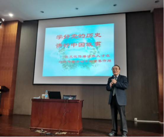 4月22日下午,国际文化与传播学部党支部邀请原中国驻加蓬共和国特命全权大使孙继文先生为学部全体教师和学生代表举办题为《学好党的历史 讲好中国故事——谈文化传播涉外人才在对外传播活动中的重要作用》专题讲座。练玉春副校长受邀参加讲座。