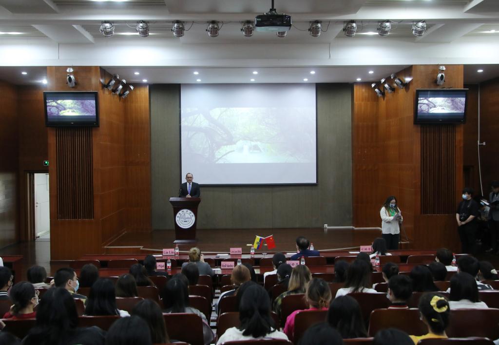 卡洛斯·拉雷亚大使随后在发言中,对刘林校长的欢迎表示感谢。他首先表示了对中国共产党建党100周年的祝贺。他表示,中厄关系一直稳定友好,厄瓜多尔政府也一直支持中国的各项外交政策。他对中国防控疫情的各项政策和措施表示高度赞赏。他指出,多年来两国的交往深入且丰富多样,希望能够有更多人了解厄瓜多尔的历史与文化;期待借此次捐赠,为两国青年搭建文化交流的平台。