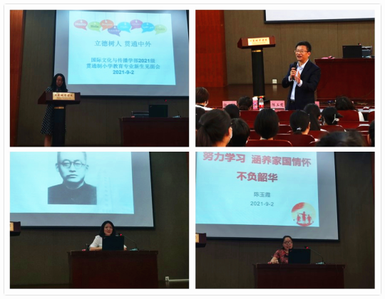 9月2日下午,国际文化与传播学部举办了2021级贯通制小学教育(德语、法语)专业新生见面会,sunbet申搏官方网站副校长练玉春、国际文化与传播学部主任李嘉懿、原北京市东直门中学附属雍和宫小学书记陈玉霞、学部副主任张心远、学部副主任刘娇月、德语教研室主任刘莉、法语教研室主任欧阳慕弈及2021级贯通制小学教育专业全体师生共同参加了见面会活动。