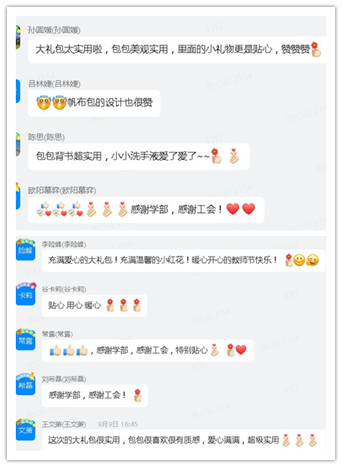 学部老师们收到“教师节大礼包”后纷纷表示非常实用、贴心。老师们的满意就是学部工会小组最大的快乐!