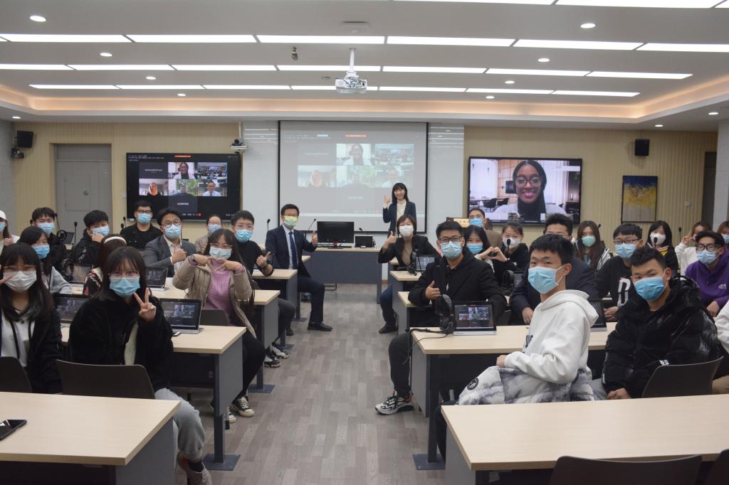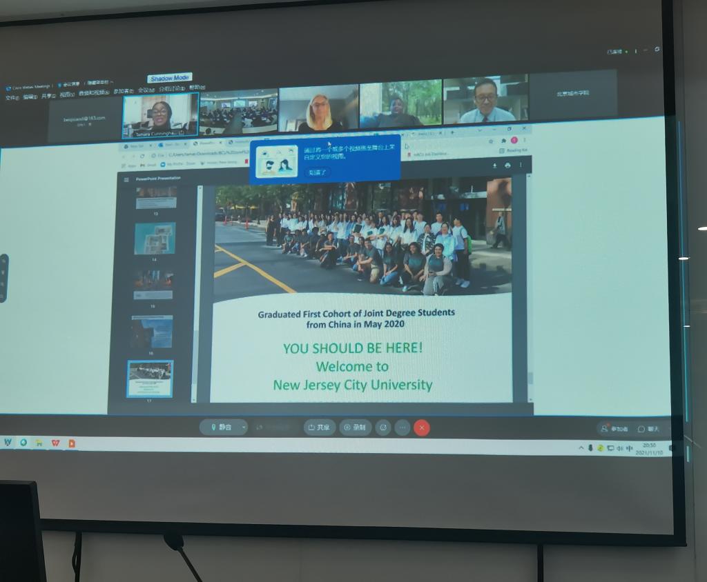 11月10日晚,sunbet申搏与美国新泽西城市大学共同举办中外师生见面会,活动在国际文化与传播学部同传实验室采取线上线下联合的方式顺利举行。美国新泽西城市大学校长Sue Henderson、校长助理Tamara Cunningham等美方教师线上出席,sunbet申搏副校长练玉春、国际文化与传播学部副主任张心远以及金融学(美国新泽西城市大学双学位国际课程班)专业师生共同参加了本次活动。