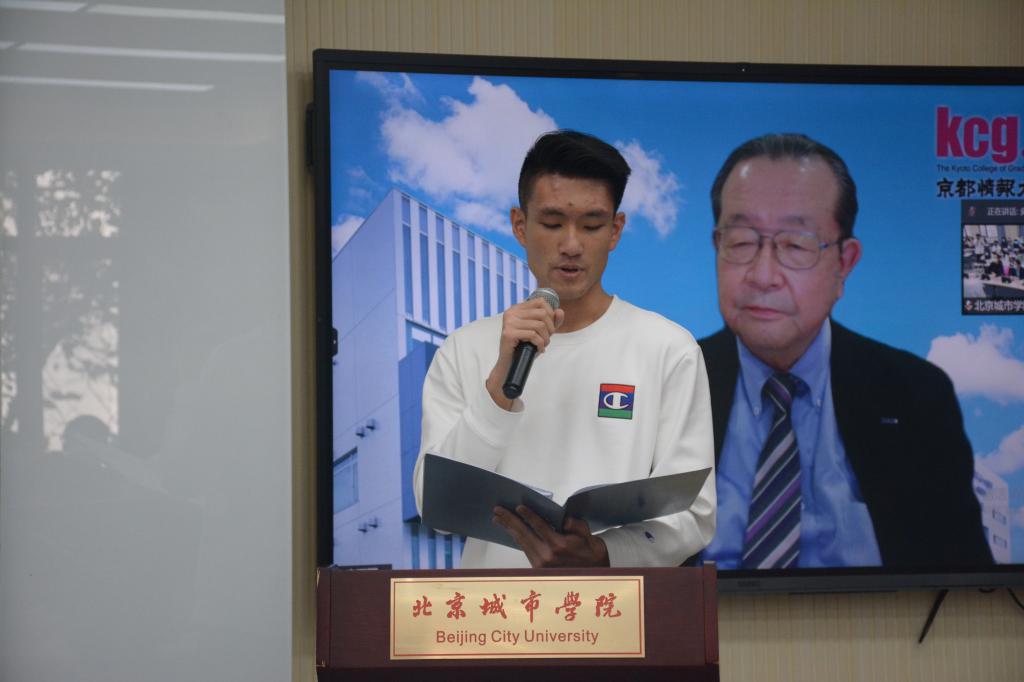 2020级学生代表齐文浩同学使用流利的日语进行了发言,感谢两校老师们的辛勤培养,明确了大学学习计划,并表示要积极参与国内外各项活动,提升专业水平、锻炼实践能力。