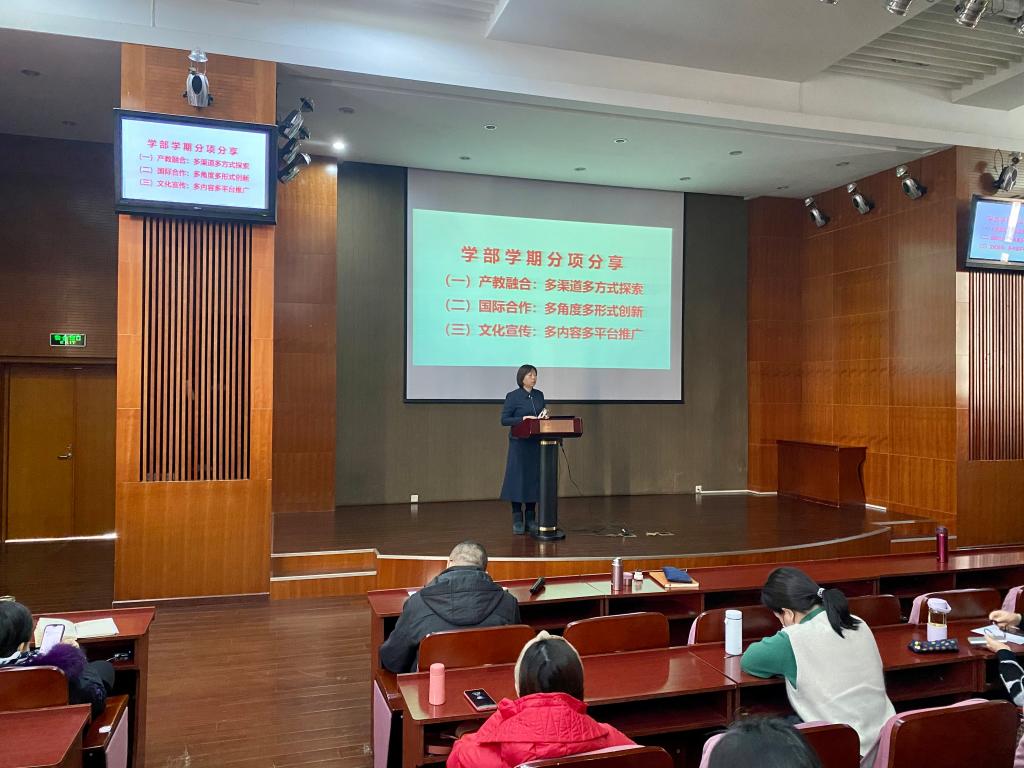 1月14日,sunbet申搏官方网站国际文化与传播学部2021-2022学年秋季学期总结会在航天城校区综合楼一层报告厅举行。文传学部全体教师参加了会议,学部副主任张心远主持会议。