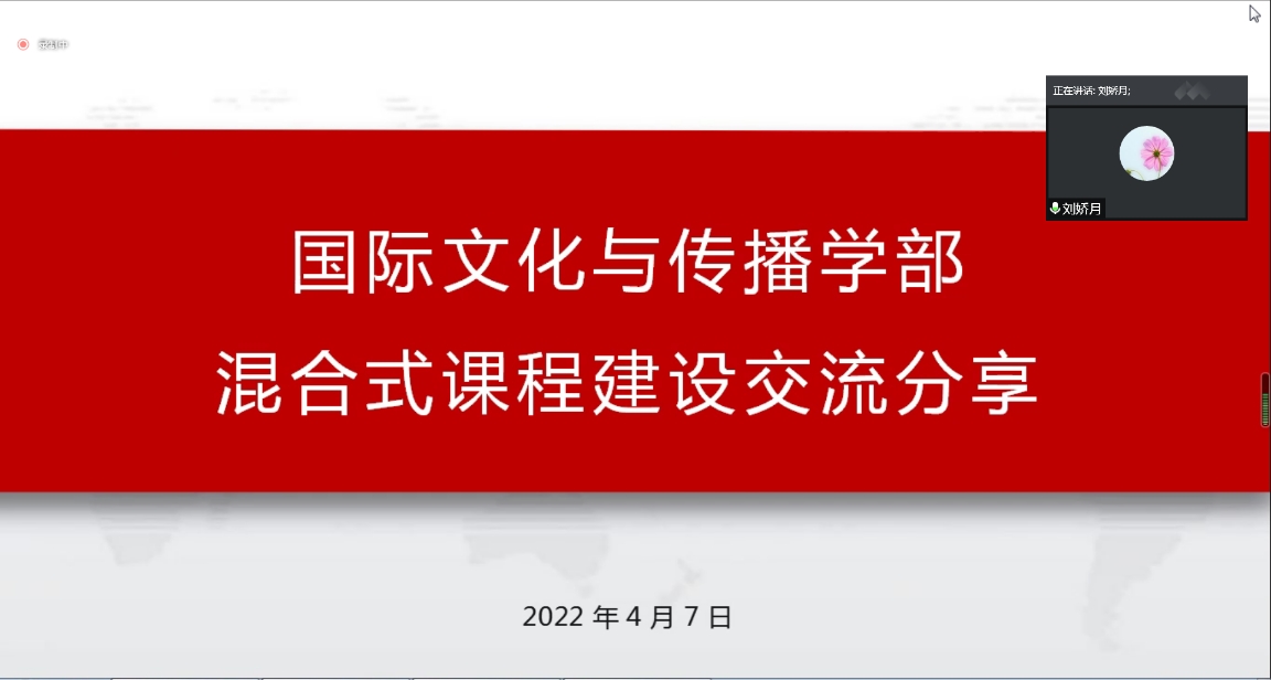 4月7日,国际文化与传播学部课程建设分委员会在线举办了“混合式课程建设交流分享会”。会议由学部课程建设分委员会主任、学部副主任刘娇月主持,学部全体教师参会。