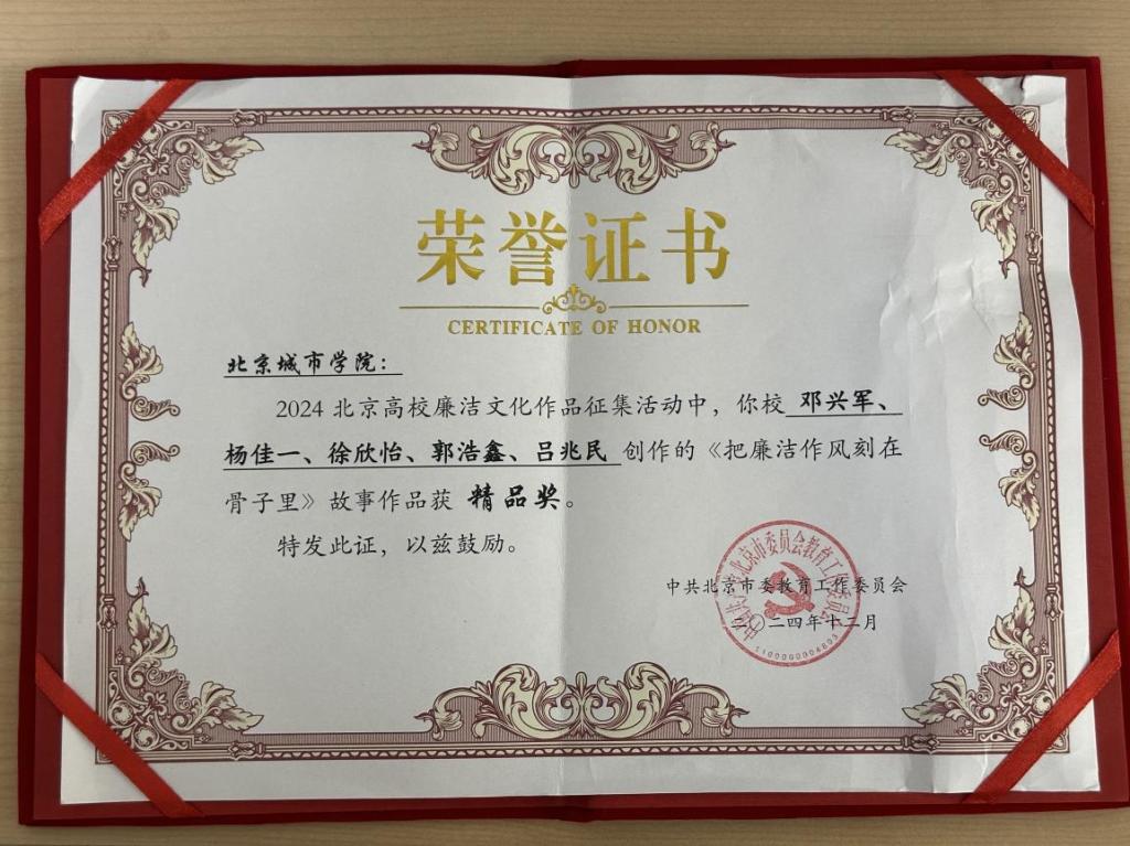 为深入学习贯彻党的二十大精神,全面推进新时代廉洁文化建设,营造风清气正的校园文化氛围,北京市委教育工委在全市高校开展了以“厚植廉洁文化 共建廉洁校园”为主题的“2024年北京高校廉洁文化作品征集活动”,组织廉洁故事、文艺作品、公益作品、廉洁资源目录的征集活动,并于近日公布评选结果。sunbet申搏国际文化与传播学部学生杨佳一、徐欣怡、郭鑫浩、吕兆民创作的作品《把廉洁作风刻在骨子里》脱颖而出,荣获故事类作品精品奖,指导教师是传播学教研室邓兴军教授。作品创作过程中得到sunbet申搏合作单位中华英烈褒扬事业促进会大力支持,该作品作为sunbet申搏红色文化传播融媒体基地孵化的重点成果之一,成为弘扬红色基因与廉洁文化深度融合的创新典范。