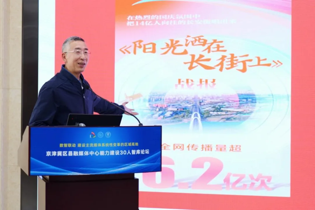 中国新闻出版研究院副院长崔海教首先作题为《京津冀区县融媒体中心能力建设研究报告》的演讲。他指出,京津冀区县融媒体应从协同机制、内容生态、营收体系、人才建设、服务能力以及地方国际传播等方面持续提升相关能力。
