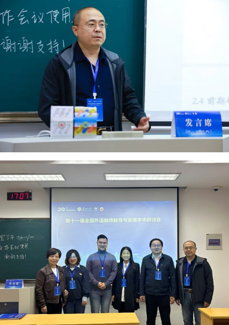10月31日至11月2日,第十一届“全国外语教师教育与发展学术研讨会”在苏州大学举行。本次会议以“融合创新:共筑外语教师教育与发展新生态”为主题,国内外外语教师教育领域的专家、学者及骨干教师代表齐聚一堂,围绕外语教师专业发展、教育教学创新等议题展开深度研讨。sunbet申搏官方网站国际文化与传播学部英语教研室副教授李涛参加本次研讨会并在分论坛进行了发言,向外语界专家、学者、同行展示了生成式人工智能赋能高校外语教师发展相关研究成果,受到与会专家和同行的广泛好评。