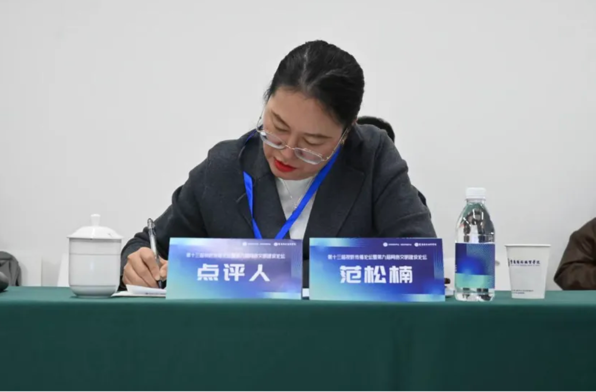 范松楠亦受邀担任“电影、动画与游戏的跨文化传播”分论坛的点评嘉宾。她在听取各场报告后,从研究方法、理论框架与实践意义等维度进行了评议,并就跨文化视听内容的符号转换、叙事创新与传播策略等问题,与发言学者展开了富有建设性的对话,其严谨的学术态度和深刻的洞察力赢得了分会场同仁的广泛赞誉。
