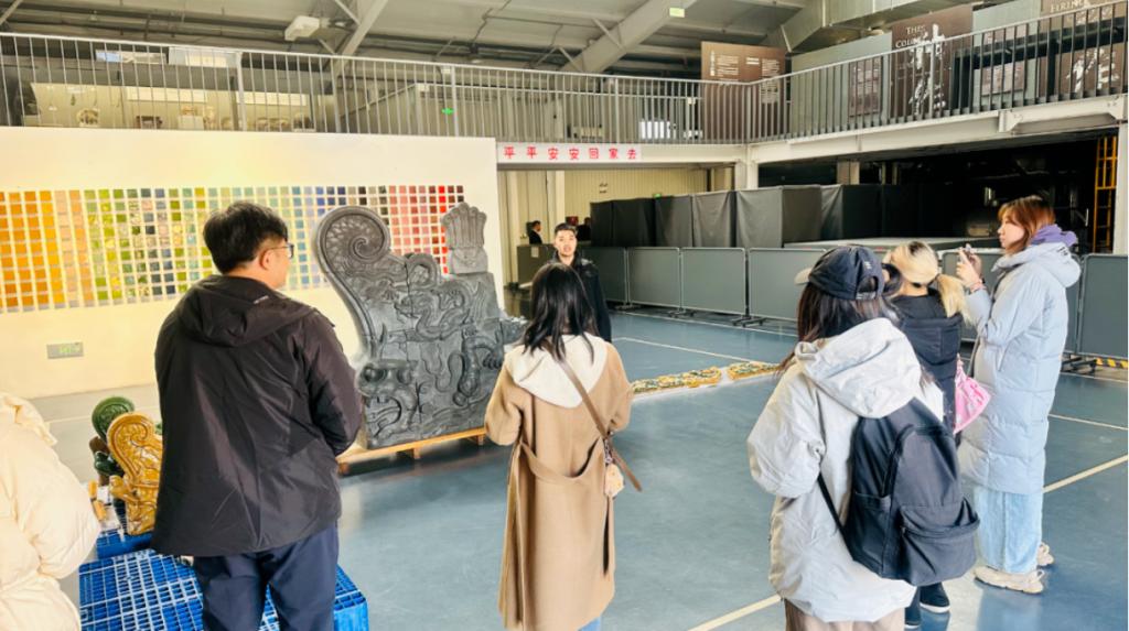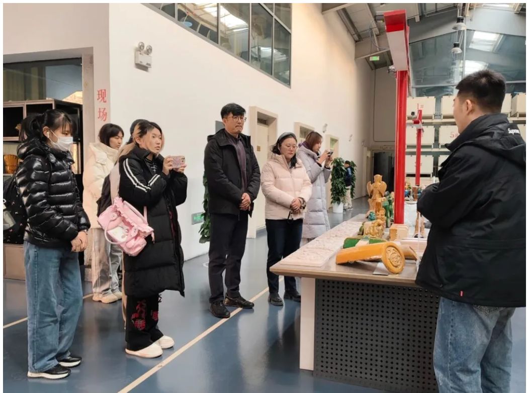 动画(日语国际课程班)专业师生们在园区讲解员的带领下,系统参观了琉璃文化展厅、古窑遗址和现代化生产厂房,重点了解了琉璃从原料到成品的完整工艺流程。后续,学生们将基于此次采集的素材,创作一系列以皇家脊兽为主题的表情包、动画短片及文创产品。