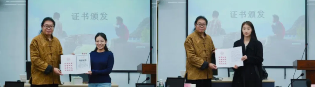 为表彰在活动筹备及影片宣发中作出突出贡献的同学们,现场举行了证书颁发仪式。苏明晴为参与活动及影片宣发创作的城市文化视听工作室颁发荣誉证书,表彰其在宣发短视频制作、活动策划执行中的亮眼表现,并为深度参与活动宣发策划、后期制作的核心学生团队颁发委托函,鼓励同学们在实践中的成长与蜕变。