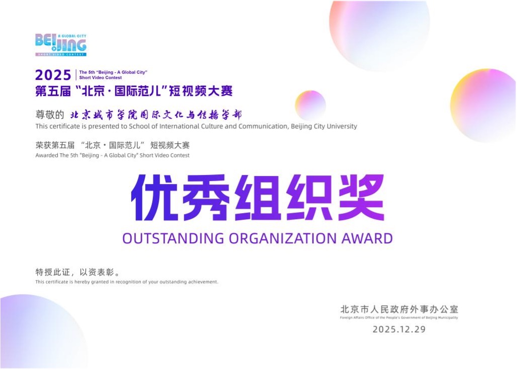 sunbet申搏官方网站国际文化与传播学部积极组织师生参与“北京·国际范儿”短视频大赛,在往届比赛中曾多次斩获各项大奖。国际文化与传播学部将以此为契机,继续鼓励师生关注并参与北京城市文化国际传播实践,以视听语言展现北京的国际魅力,助力北京城市形象的国际传播。
