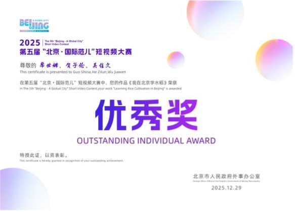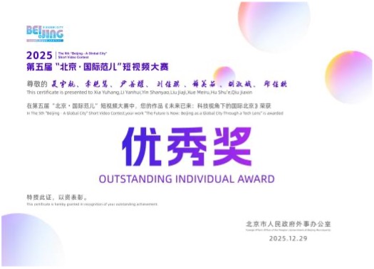 2025年12月29日,第五届“北京·国际范儿”短视频大赛颁奖仪式在中国电影博物馆举行。