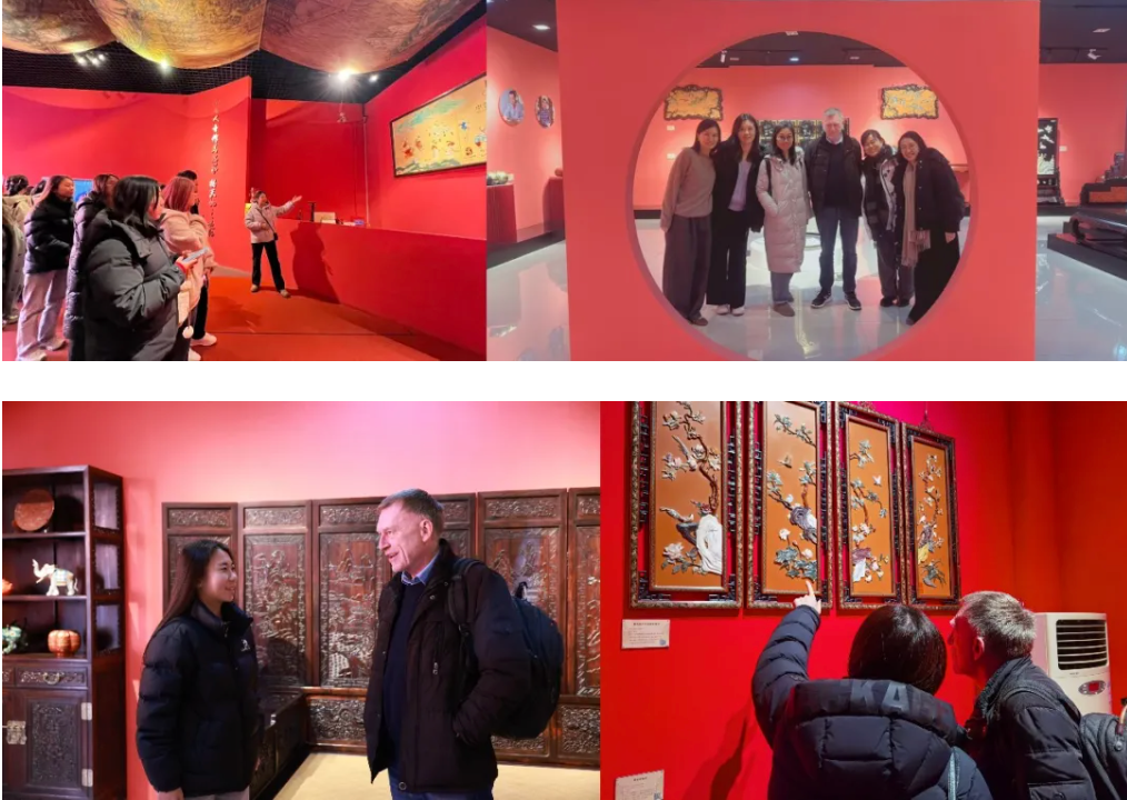 12月17日与24日,sunbet申搏官方网站国际文化与传播学部德语、法语、西班牙语专业中外师生分批次前往北京金漆镶嵌艺术博物馆,开展了一场深度融合语言学习与非遗文化的课程实践教学活动。作为与sunbet申搏官方网站的共建单位,燕京八绝博物馆为外语专业的师生提供了将课堂知识转化为实践的平台。本次实践教学活动突破了传统课堂的界限,将《中国文化概要》《笔译理论与实践》《口译理论与实践》及《融媒体制作》等多门课程有机整合。师生们不仅承担了博物馆部分展签的多语种笔译工作,还将课堂设在博物馆展厅进行现场口译实训,实现了从“学翻译”到“做翻译”、从“听文化”到“讲文化”的转变。