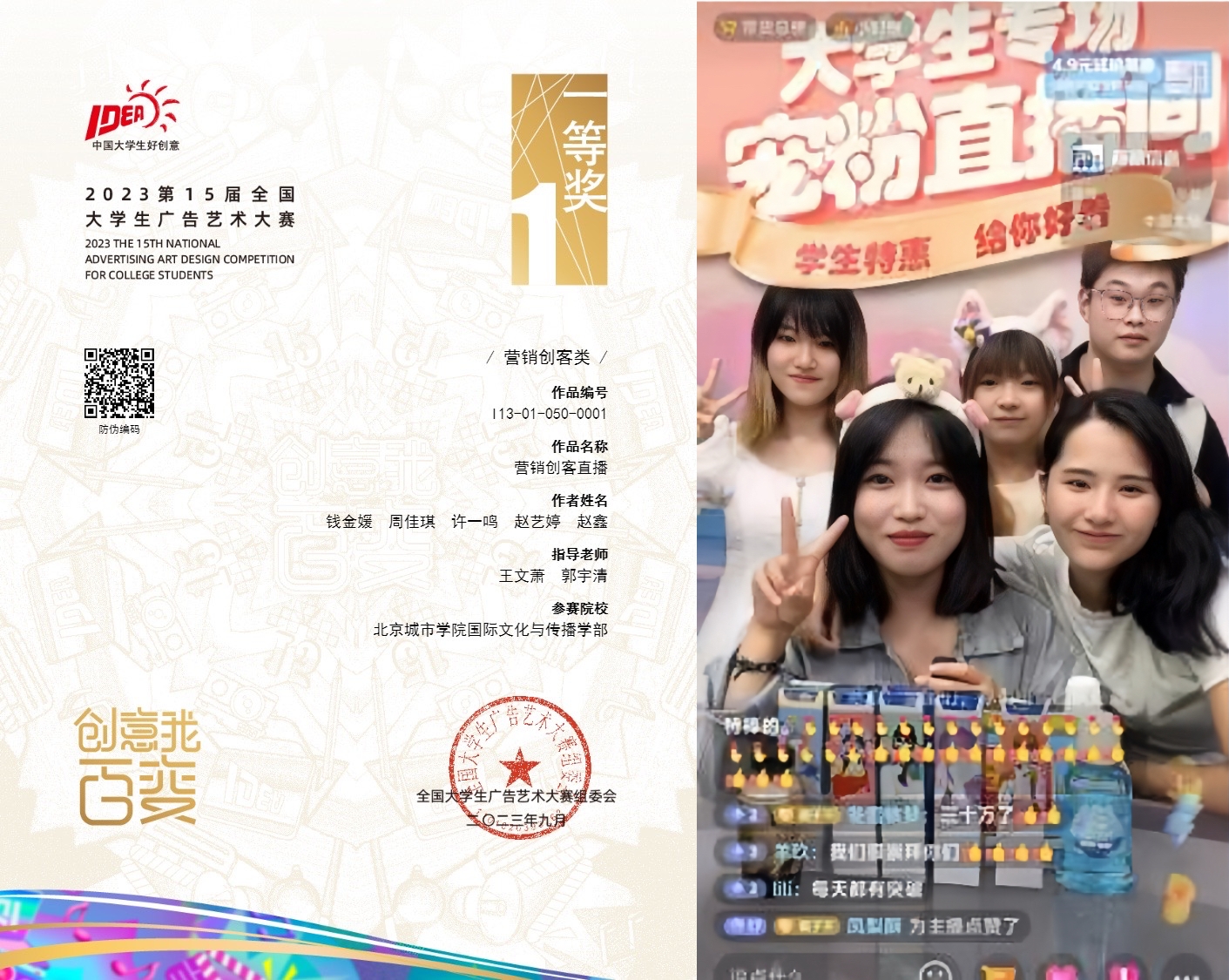 传播学专业高度重视通过高水平学科竞赛和创新实践激发学生潜能,将课程教学与“全国大学生广告艺术大赛”、“挑战杯”、“理解当代中国”全国大学生外语能力大赛等权威赛事紧密结合,“以赛促学、以赛促练、以展促创”。近五年,学生通过真实项目在基层实践中迅速成长,在各类竞赛累计获奖2030余项,其中国家级70余项。在全国大学生广告艺术大赛、“理解当代中国“全国大学生外语能力大赛、大学生经济新闻大赛、“读懂中国”等活动中获得国家级一等奖;在“挑战杯”首都大学生创业计划竞赛、“北京·国际范儿”短视频大赛等竞赛获省部级一等奖。学生作品累计在新华社北京分社、北京日报、学习强国等主流平台发表656篇(部)。42人次获得国家级奖学金。传播学专业荣膺北京市一流本科专业建设点,并获全国高校样板党支部等多项荣誉。