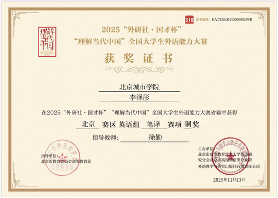 学生荣获2025“外研社·国才杯”“理解当代中国”全国大学生外语能力大赛北京赛区英语组笔译赛项铜奖