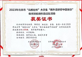 学生在2023年北京市“高教社杯”大学生“用外语讲好中国故事”优秀短视频作品征集活动中荣获二等奖