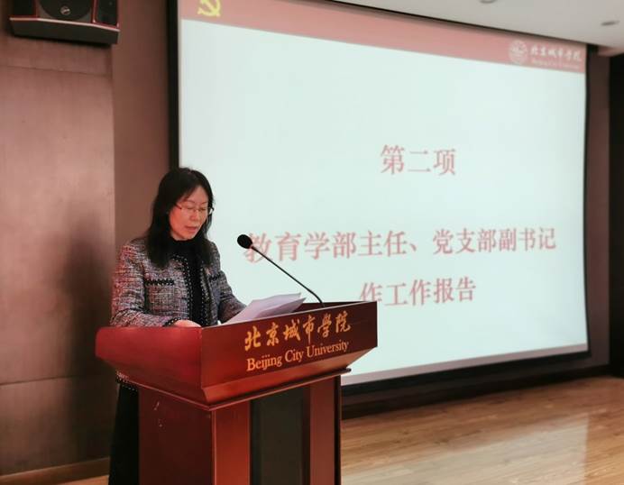 教育学部主任、党支部副书记周建辉做工作报告