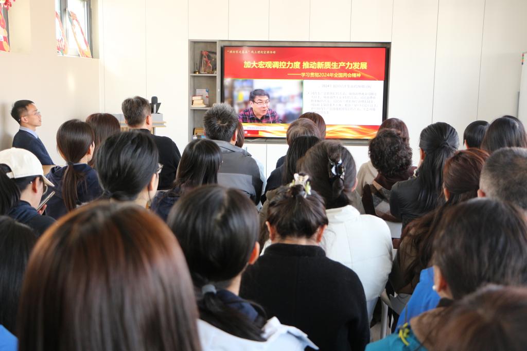 在集体学习环节,党员教师们共同观看了中国财政科学院张鹏研究员所做的《加大宏观调控力度 推动新质生产力发展——学习贯彻2024年全国两会精神》直播报告。深入学习两会精神,理解在新时代背景下,新质生产力的内涵、特征和发展趋势,树立培养新型劳动者人才队伍的责任感和紧迫感,不断提升党员教师的专业素养和教学水平,为新质生产力的发展提供有力支撑和保障。