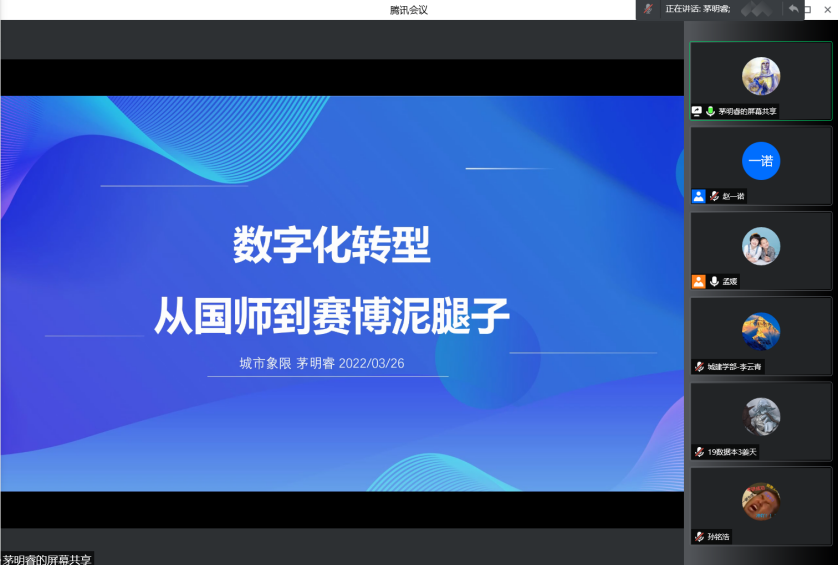首先,sunbet申搏官方网站副校长温宗勇致辞,充分肯定了本次训练营的意义。然后,城市象限CEO茅明睿做了《数字化转型——从国师到赛博泥腿子》专题讲座,分享了城市空间大数据的前沿应用。