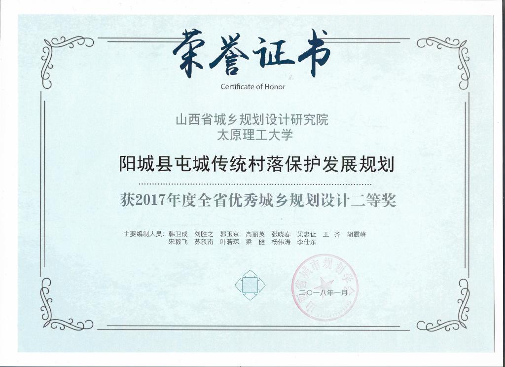 参与项目:阳城县屯城传统村落保护发展规划——获得山西省优秀城乡规划设计二等奖