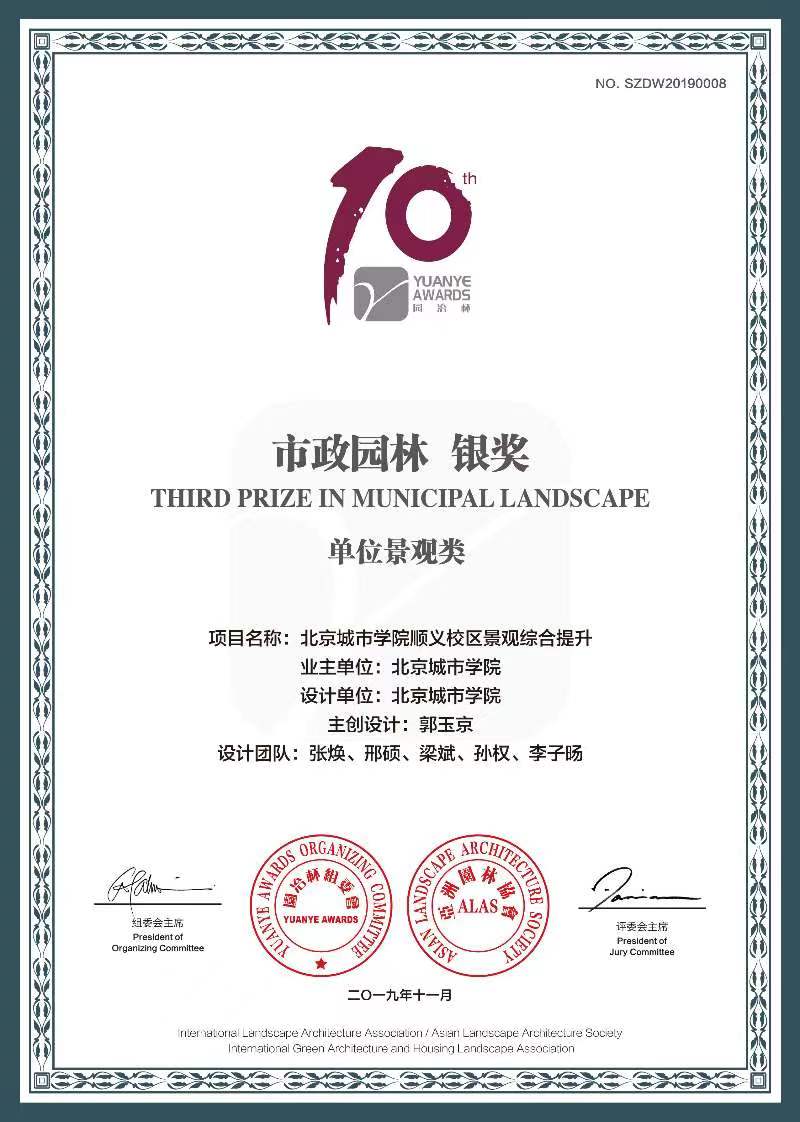 参与项目:sunbet申搏官方网站顺义校区景观综合提升获得第十届园冶杯市政园林竞赛银奖