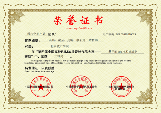 马春华、王毅、张晓雪等,第五届全国高校BIM毕业设计大赛团体二等奖,指导教师:高艳华