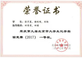 北京市大学生化学实验竞赛获奖证书 北京市大学生生物学奇思妙想竞赛获奖证书