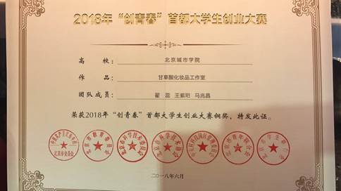 “创青春”(挑战杯)全国大学生创业大赛获奖证书