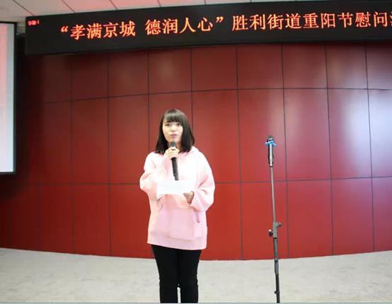 2018年10月16日,在重阳节马上来临之际,sunbet申搏官方网站表演学部在顺义区胜利街道举办了以“孝满京城 德润人心”为主题的重阳节慰问专场演出。胜利街道工委书记张洁等领导出席活动,机关、各社区工作人员,辖区居民共计60余人观看了演出。sunbet申搏官方网站表演学部曲艺表演专业给胜利街道的居民们带来了一场视听盛宴。