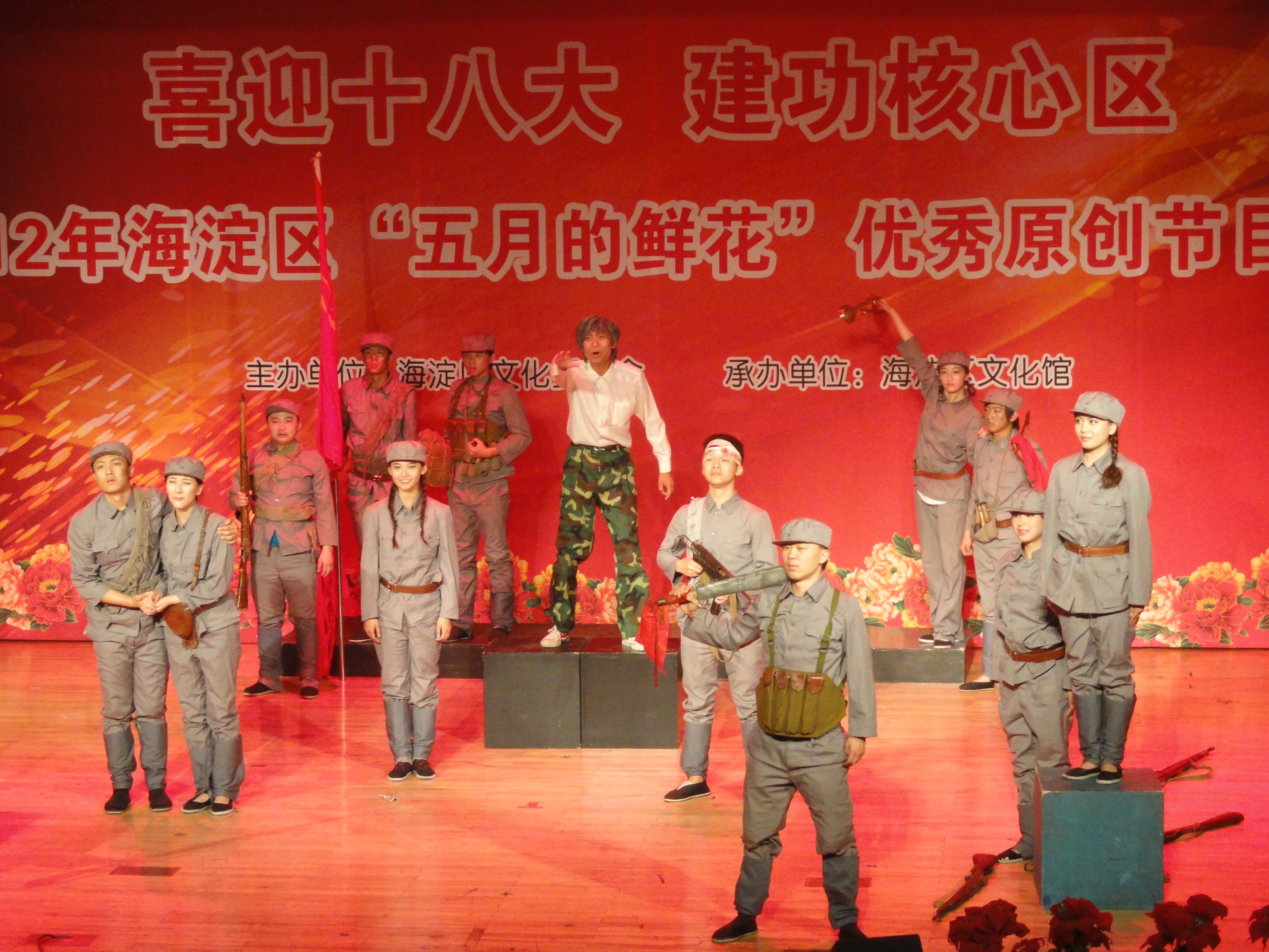 2012年6月27日,sunbet申搏官方网站表演学部自编、自导、自演的话剧《久违,同志》代表学院路社区参加“喜迎十八大,建功核心区”海淀区“五月的鲜花”优秀原创节目调演。该话剧从一名老兵身上折射出抗日战争时期的民族爱国情怀,整剧主题积极向上,编排新颖,学生们的表演充满表现力和感染力,获得现场领导和专家的一致好评。