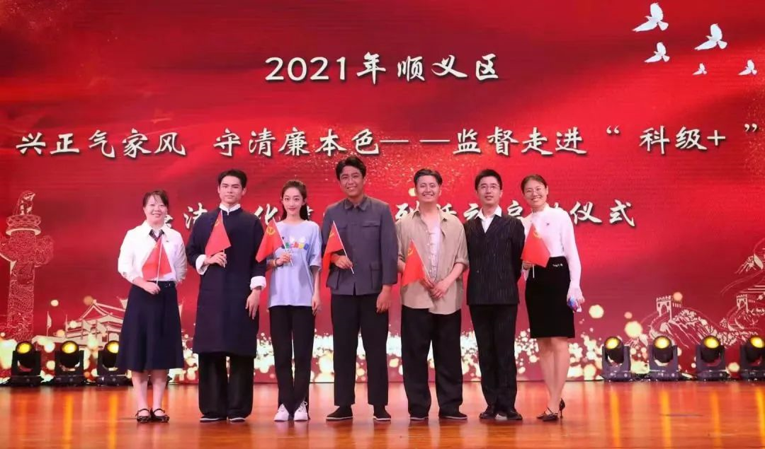 5月28日下午,为庆祝建党100周年,表演学部表演(影视表演)专业王也、周锦鹤、朱定立、王文勇四名同学参加了顺义区“兴正气家风、守清廉本色——监督走进‘科级+’”廉洁文化建设活动启动仪式。