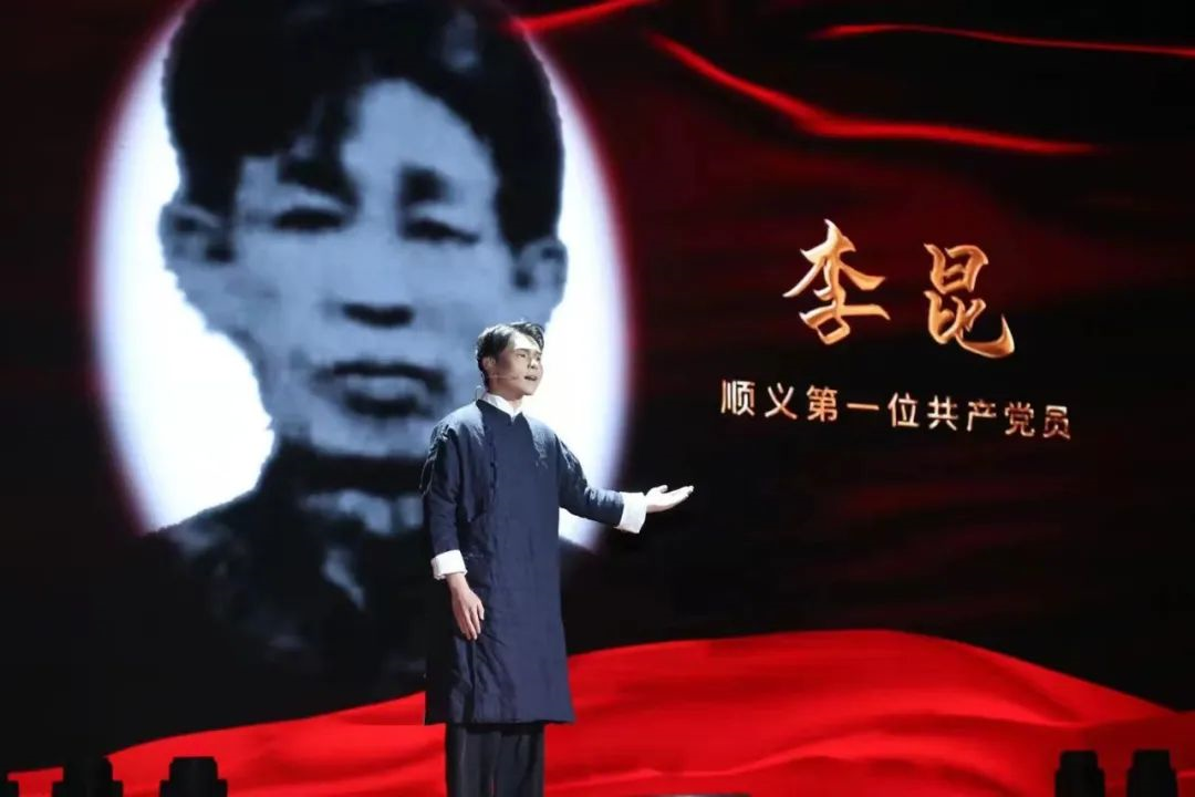 顺义区第一位共产党员李昆的扮演者周锦鹤同学领誓,新党员宣誓