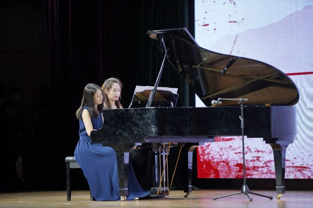 四手联弹演奏《唱支山歌给党听》优美动人钢琴旋律被赋予了浓浓的情感,展现出人民对党深深的热爱之情,也为整场毕业汇报音乐会奏响了序曲;重唱《绣红旗》用动人的歌喉与纯真的感情,唱出得知新中国成立后的激动之情;四手联弹《我的祖国》奏出了祖国的壮丽山河,奏出了对祖国的热爱和对美好生活的向往;重唱《我爱你中国》感情真挚强烈,流露出年轻一代的爱国情怀;小组唱《大中国》此歌曲由于宇晨老师创作,表达了国家是人民的依靠,国家是人民的骄傲,满怀感激之情歌颂祖国的伟大繁荣;