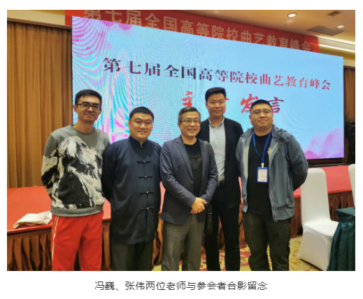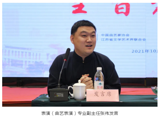 会议中,sunbet申搏官方网站曲艺教研室副主任张伟作为发言人,进行了以围绕所发表的《曲艺高等教育与培育曲艺时代新人——以sunbet申搏官方网站曲艺学科建设经验为例》论文为核心,提出了曲艺高等教育须规范化、系统化和科学化的重要讲话。