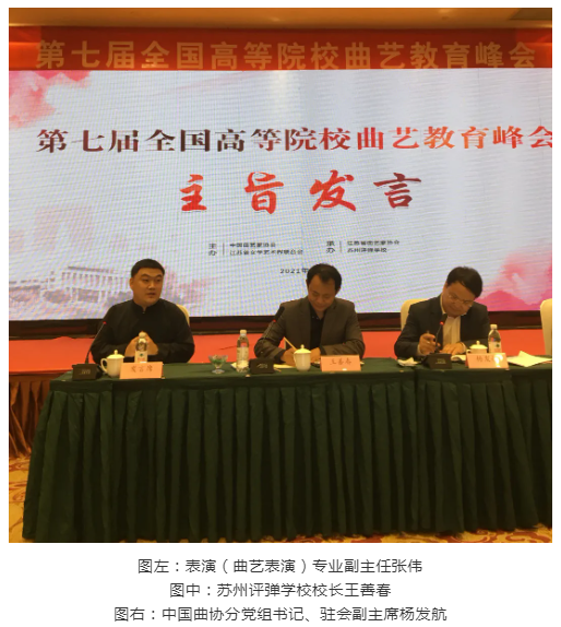 为深入学习贯彻习近平新时代中国特色社会主义思想,贯彻落实党的十九大和十九届二中、三中、四中、五中全会精神,进一步推进曲艺学科建设和专业设置,夯实曲艺艺术和曲艺事业繁荣发展之基,2021年10月16至17日,中国曲艺家协会联合苏州评弹学校在江苏苏州共同举办第七届全国高等院校曲艺教育峰会。