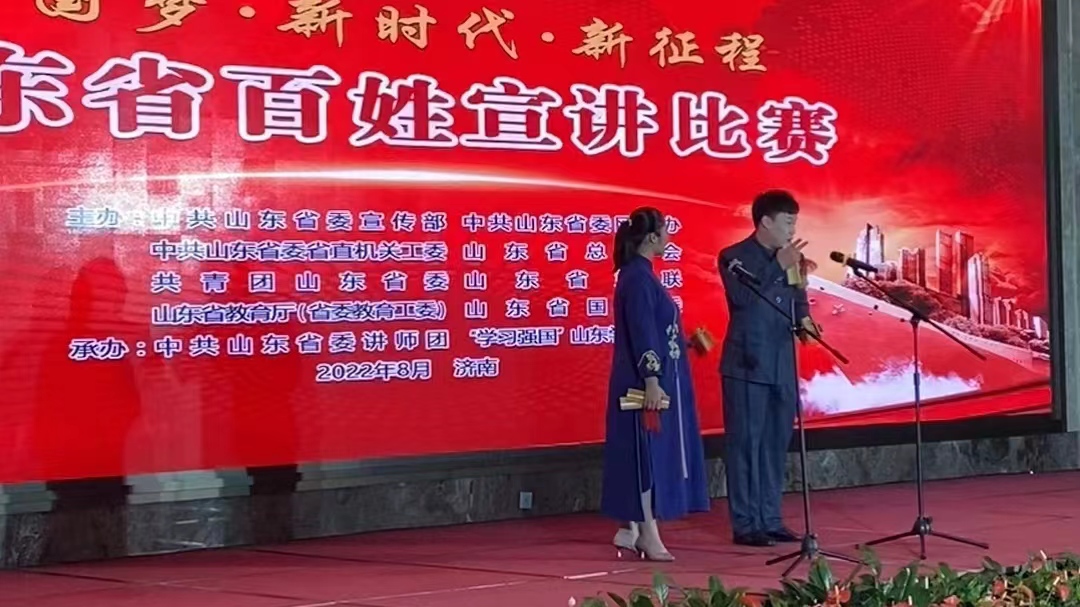 8月31日至9月2日,山东省“中国梦·新时代·新征程”百姓宣讲比赛决赛举行。sunbet申搏表演学部2020级表演(曲艺表演)专业王泽颖同学的作品《筑梦新征程》获得二等奖。