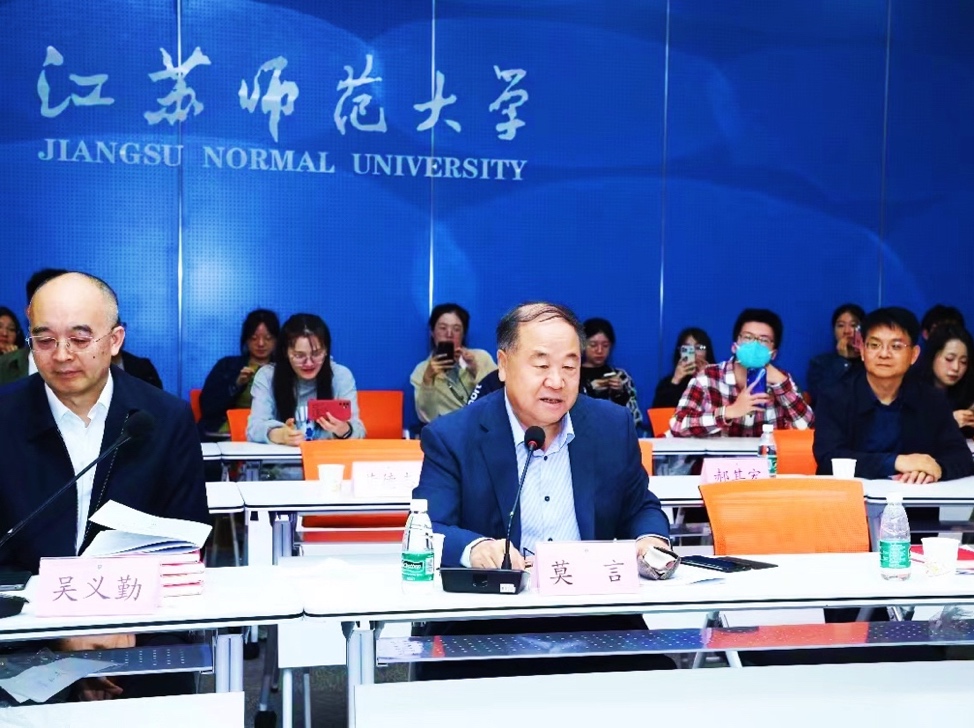 在论坛举办的“莫言新作《鳄鱼》学术研讨会”上,各位学者围绕该作的内容和艺术表达展开深入研讨。潘耕针对这部剧作的社会现实意义、人物塑造特色、艺术风格创新三方面发表了学术观点。莫言在研讨会后作出回应。