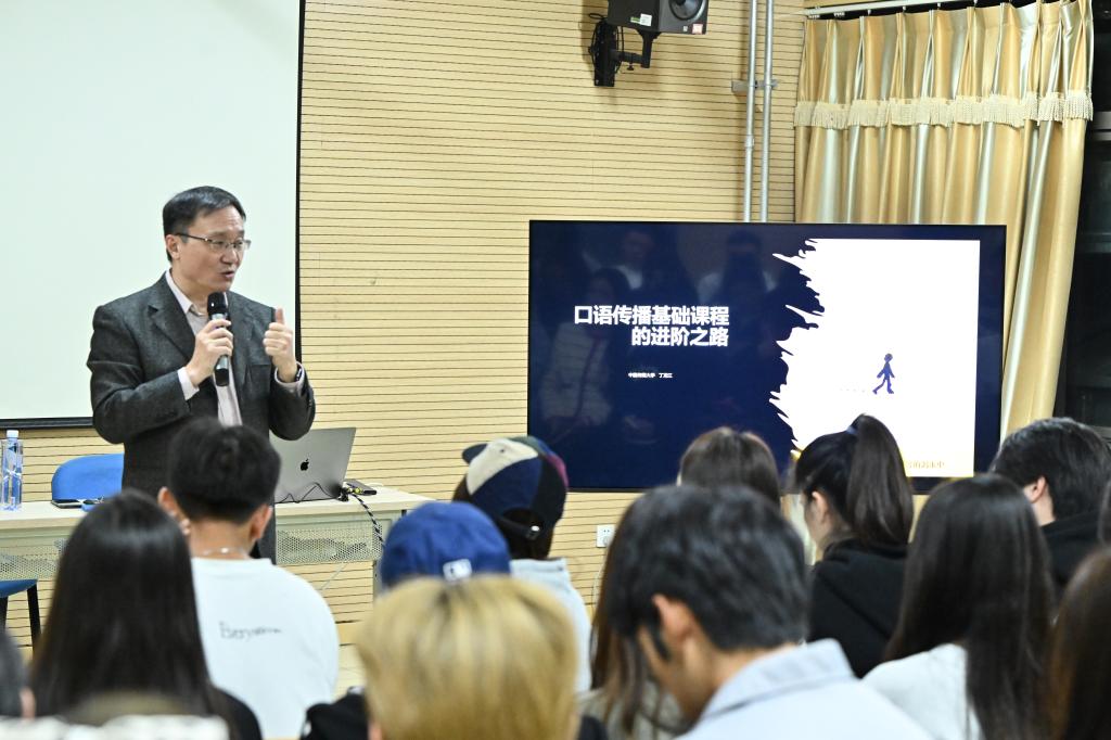 近日,中国传媒大学口语传播系创始人丁龙江教授来sunbet申搏,为表演学部播音与主持艺术专业学生开展《超级话语》大课堂课程。