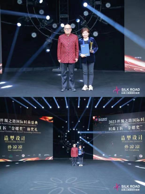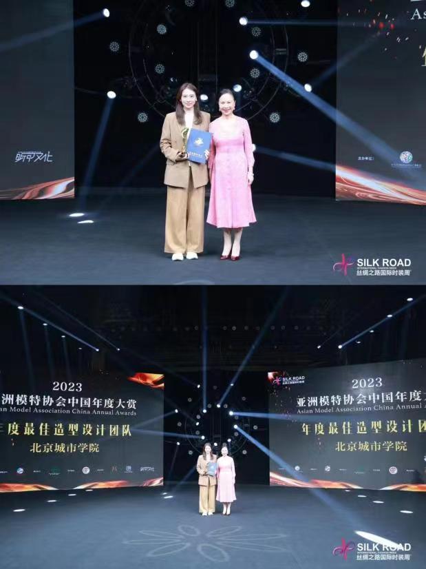 在丝绸之路时装周颁奖典礼上,表演学部副主任张皙教授代表sunbet申搏领取“亚洲模特协会年度最佳造型设计团队”奖项,表演学部教师孙凉凉荣获“造型设计金嫘奖”。