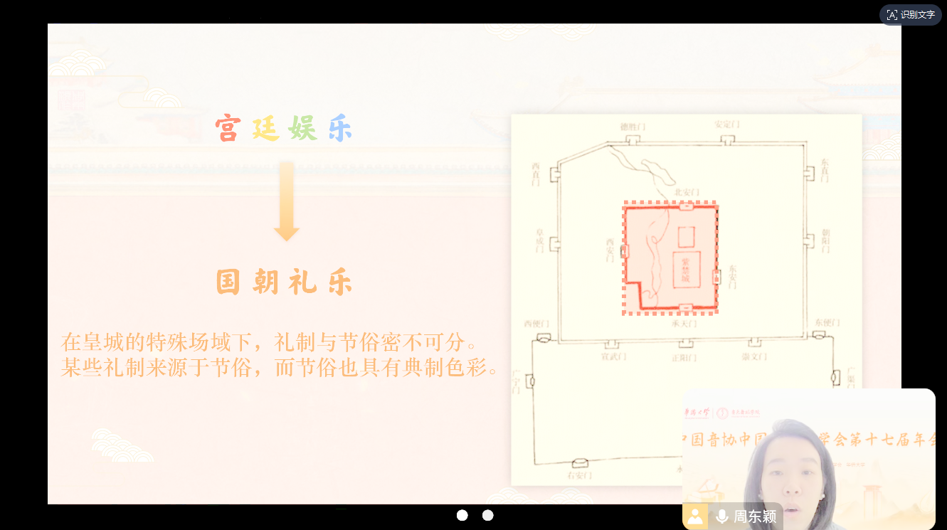 11月10日,教师周东颖以《音乐疆界的凝结与流动——清代中叶北京城戏曲活动记忆的重建》为题,创新性地运用跨学科研究方法——音乐地理学,深入探究清代皇城与宫城的戏曲音乐活动。对宫城与皇城多处戏曲音乐活动史料的解读别具一格,有力地凸显了戏曲音乐活动在清代中叶宫城与皇城所具有的双重功用。在该研究中,周东颖密切关注到2019年故宫养心殿修缮项目中出土的新史料,并将其巧妙地融入其中。同行专家对周东颖的研究给予了高度肯定,认为其研究史料来源独特、方法新颖。